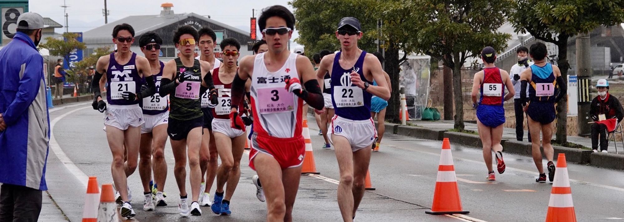 Daisuke Matsunaga leads the field at the 46th All Japan Race Walking event in Nomi (© Organisers)