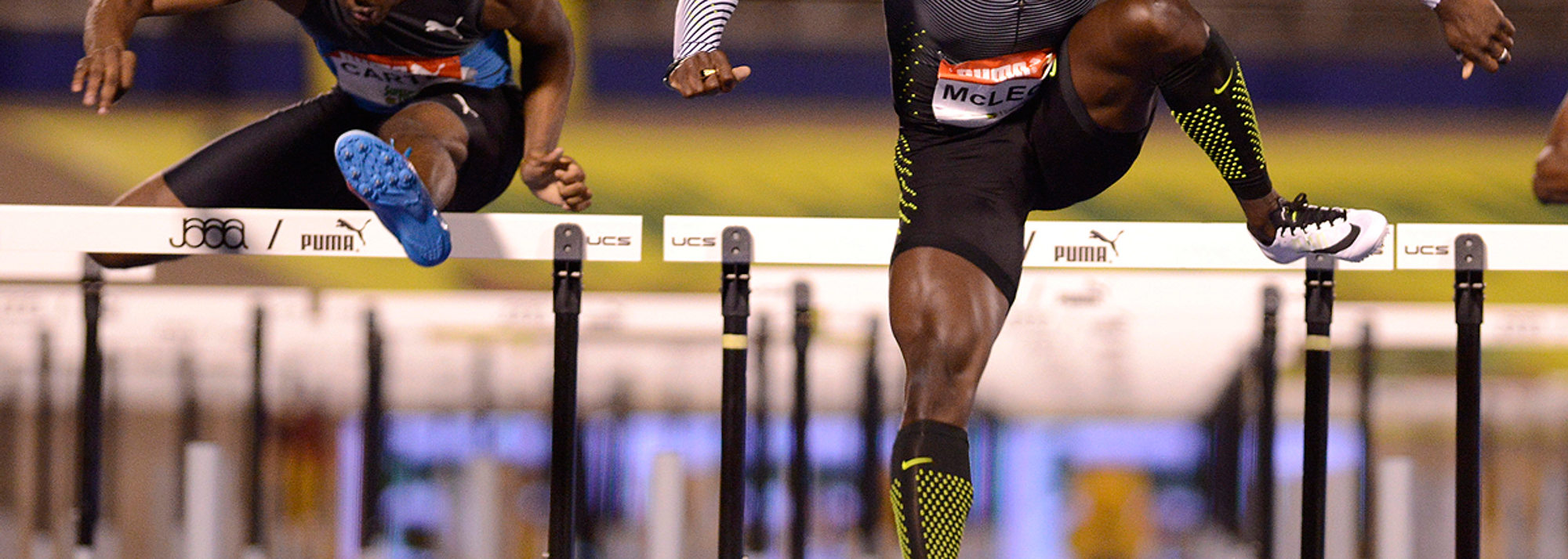 Omar McLeod wins the 110m hurdles at the Jamaican Championships (© AFP / Getty Images)