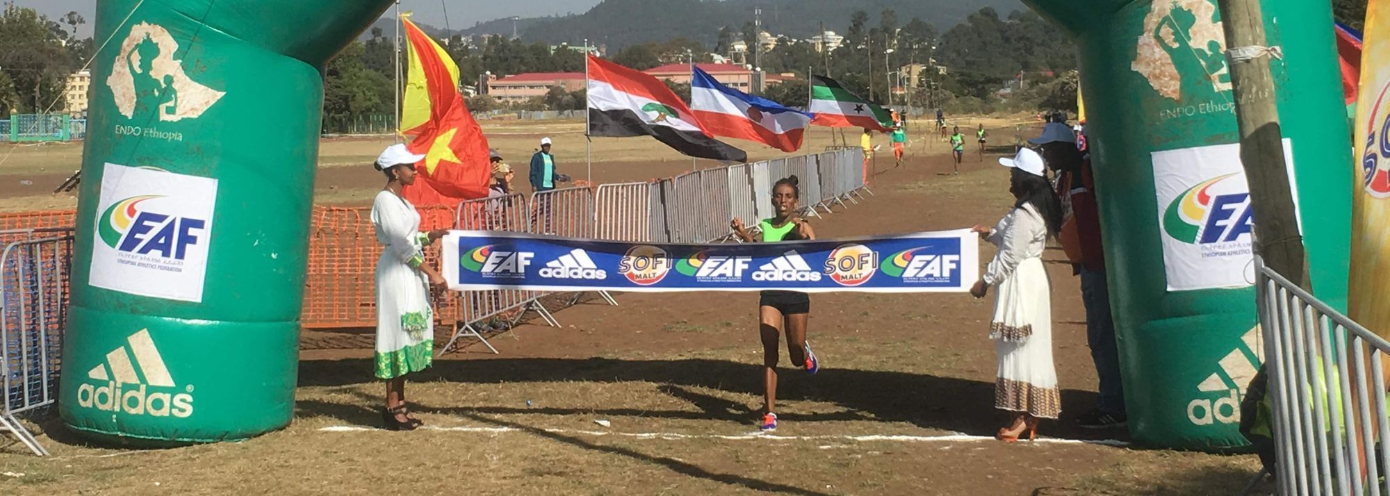 Enatnesh Alamirew winning the Jan Meda international cross country in Addis Ababa (© Abiy Wendifraw)