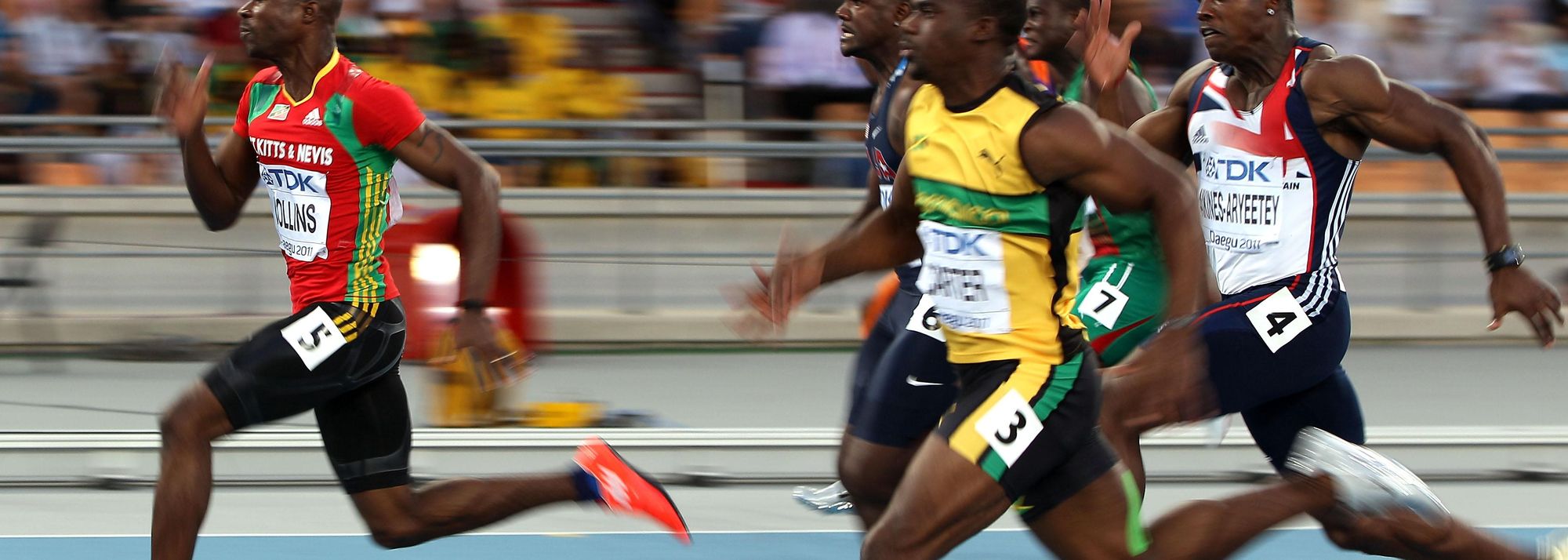 Kim Collins advances to the men's 100m final in Daegu (© Getty Images)