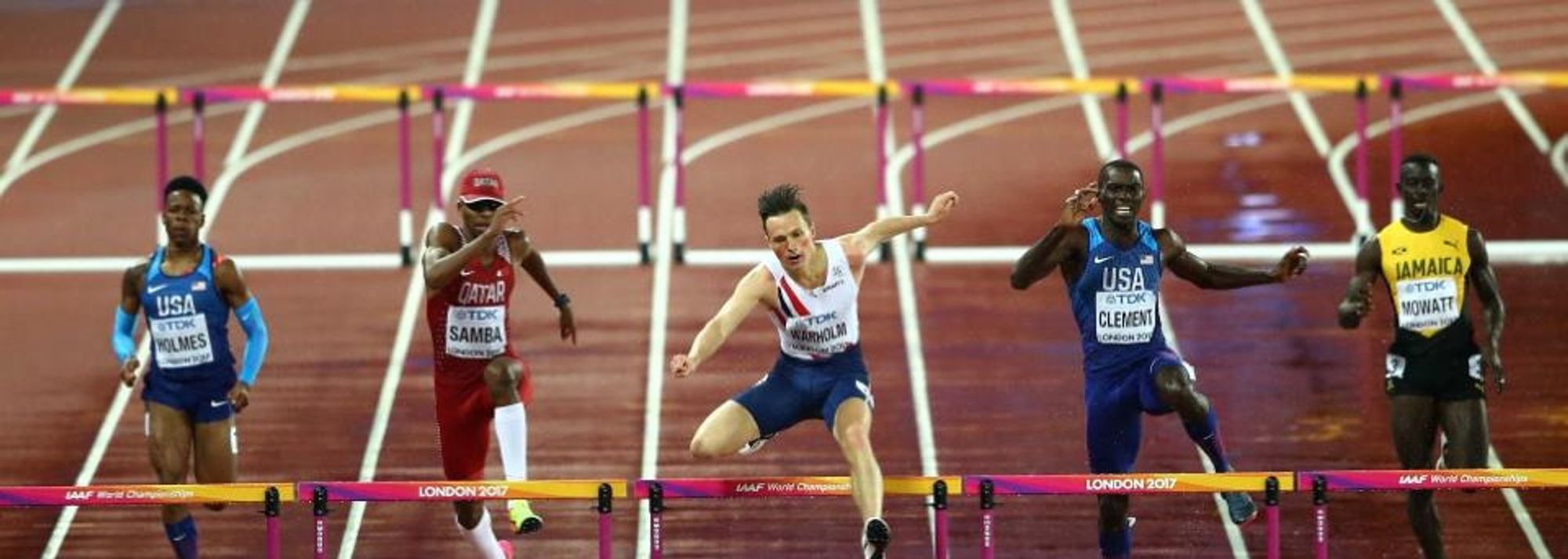 Entering the home straight, Warholm had a three-metre lead, but the ominous trio of Clement, Copello and Samba loomed and looked to be gaining ground, a repeat of previous rounds the likely outcome.