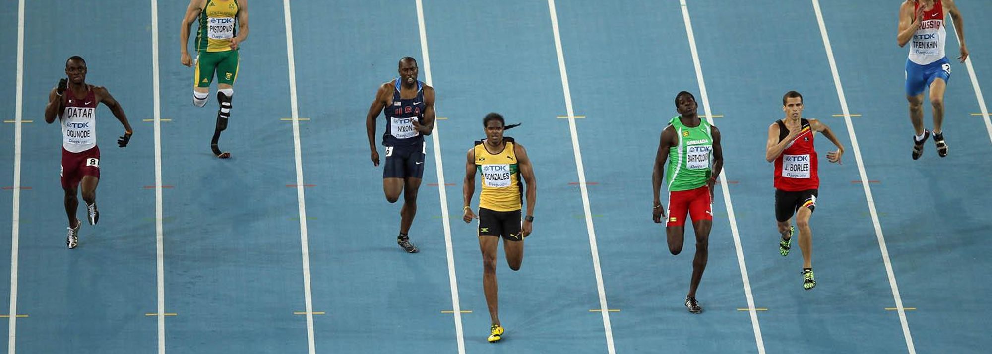 At the business end of the race Jermaine Gonzales of Jamaica, who looked on paper to be the class of the field, backed up that assumption to cross the line first in 44.99. The fight for the second automatic qualification spot provided a right scrap with Jonathan Borlee of Belgium edging out Rondell Bartholomew of Grenada by 0.03 in 45.14. Borlee joined his twin brother Kevin in the final while Bartholomew took the fastest loser spot.
