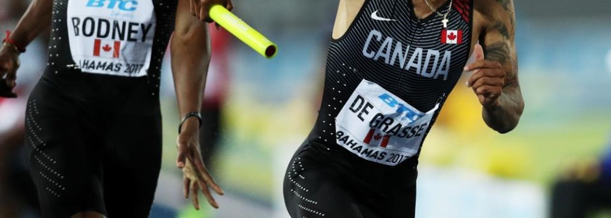 Andre de Grasse of Canada in the 4x200m final in Nassau (© Getty Images)