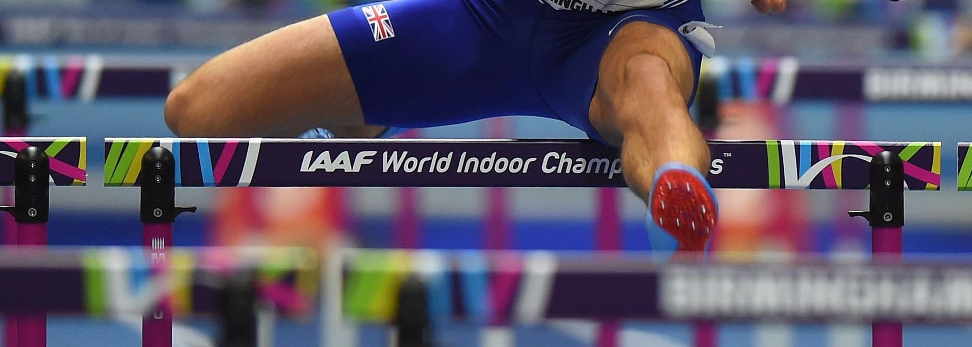 Andrew Pozzi in the 60m hurdles at the IAAF World Indoor Championships Birmingham 2018 (© Getty Images)