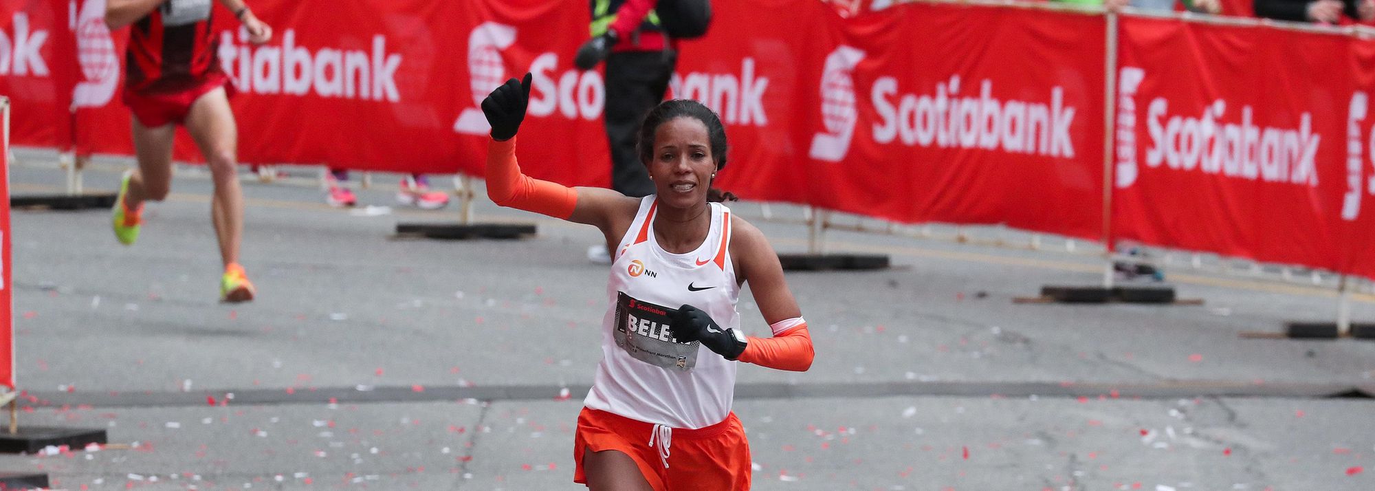 Mimi Belete en route to her course record in Toronto (© Victah Sailer)
