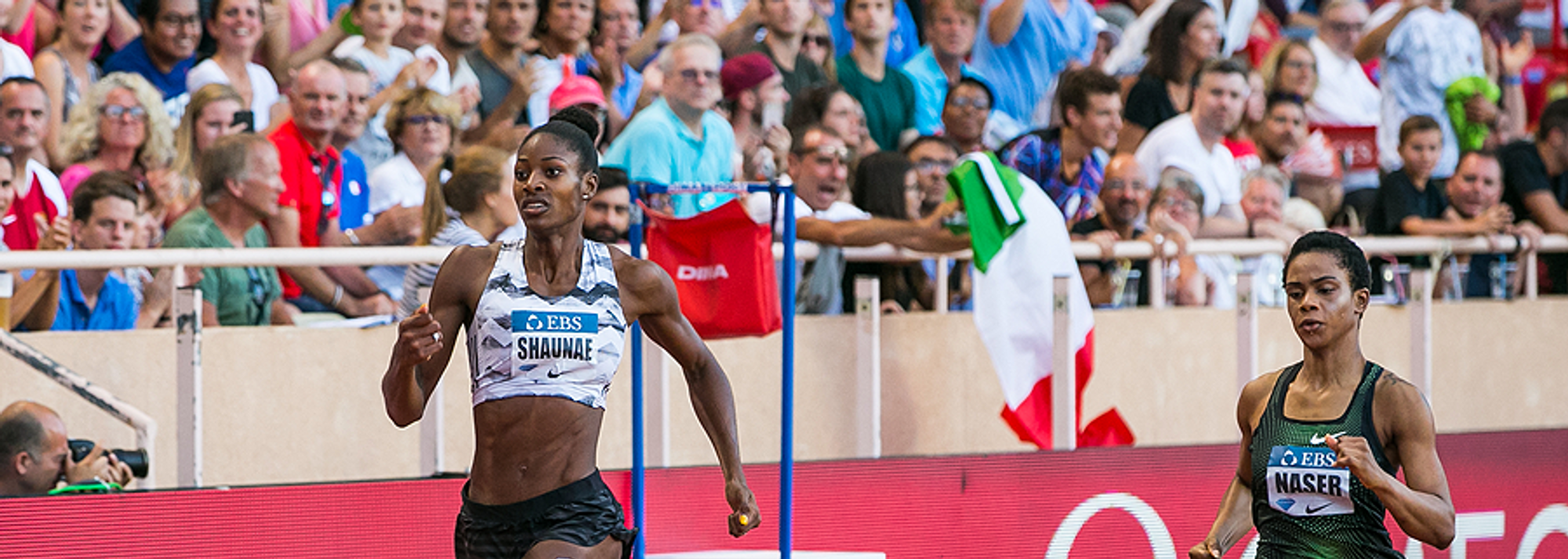 Shaunae Miller-Uibo on her way to winning the 400m at the IAAF Diamond League meeting in Monaco (© Philippe Fitte)