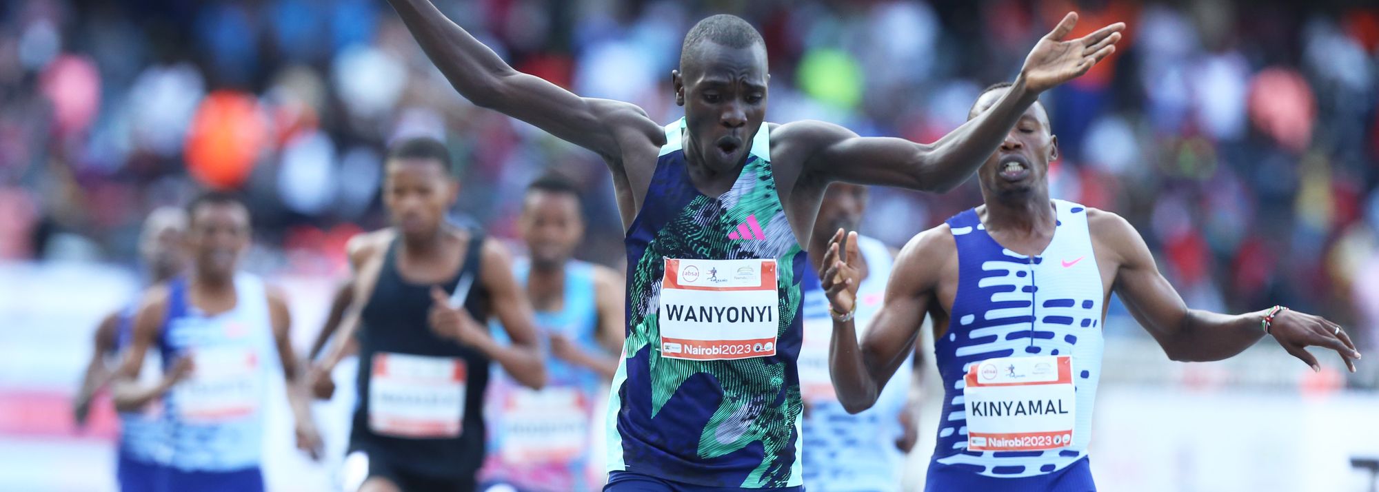 Wanyonyi, who won a world U20 title on the same track in 2021, made the stadium errupt after he won a battle with Wycliffe Kinyamal in the men's 800m, clocking a world-leading PB of 1:43.32 that also improved the meeting record by more than a second. Kinyamal was second in 1:43.66, while 2019 world 1500m champion Timothy Cheruiyot finished third in 1:44.99.