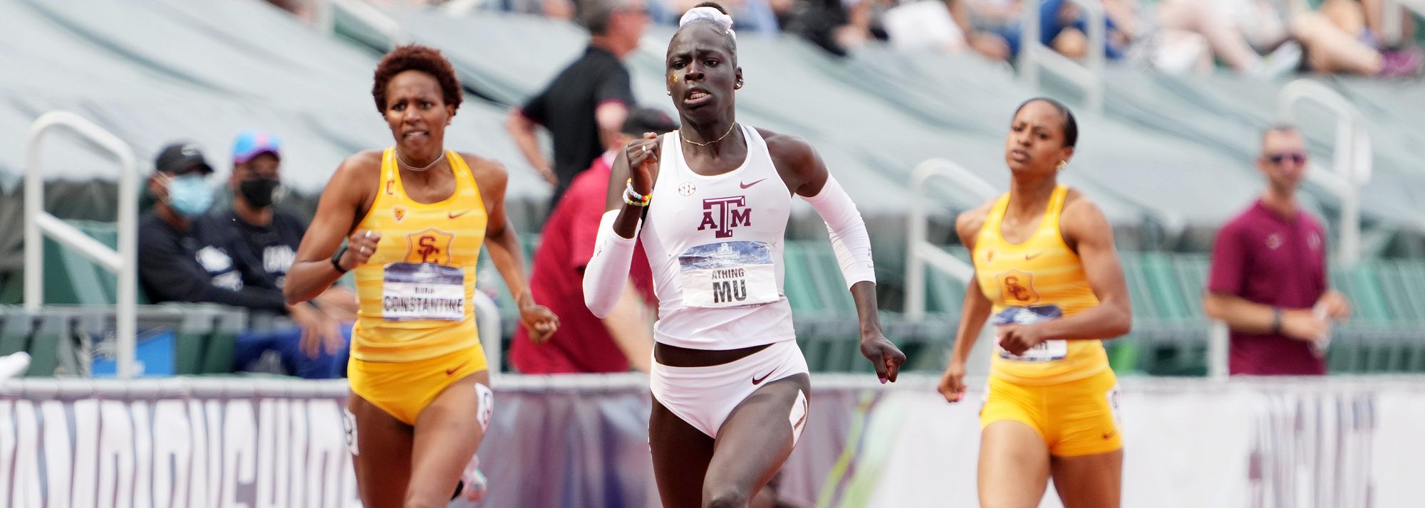 Just 80 minutes after winning the individual 400m title, Mu teamed up with Tierra Robinson-Jones, Charokee Young and Jaevin Reed to win the 4x400m in a collegiate record of 3:22.34. Mu’s anchor leg of 48.84 is the fastest split ever recorded at the NCAA Championships.