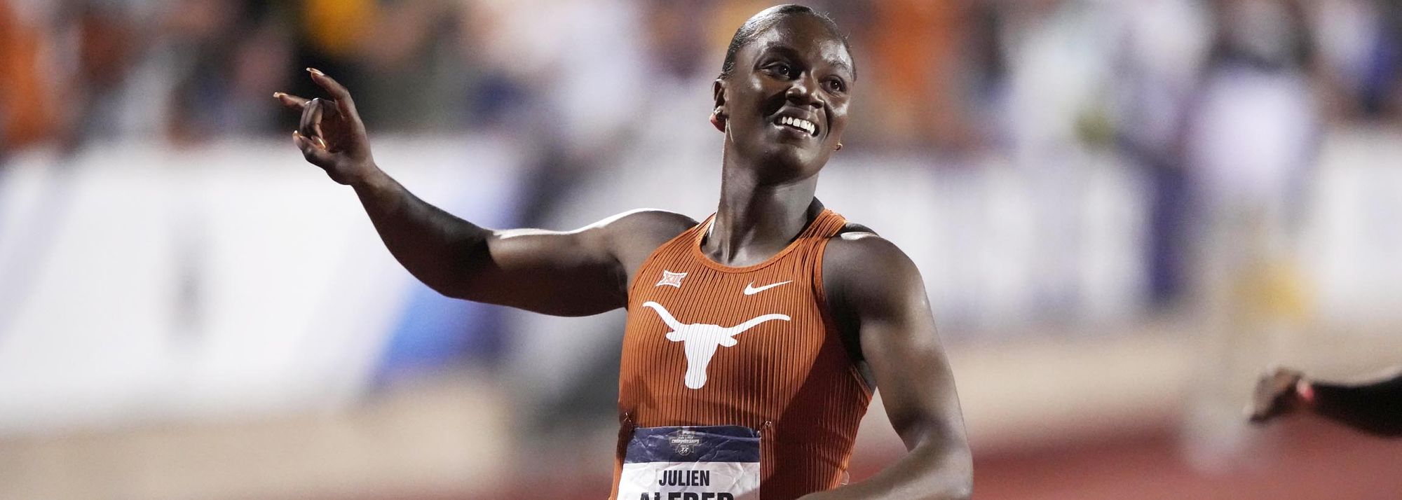 Julien Alfred at the NCAA Championships in Austin (© Kirby Lee)