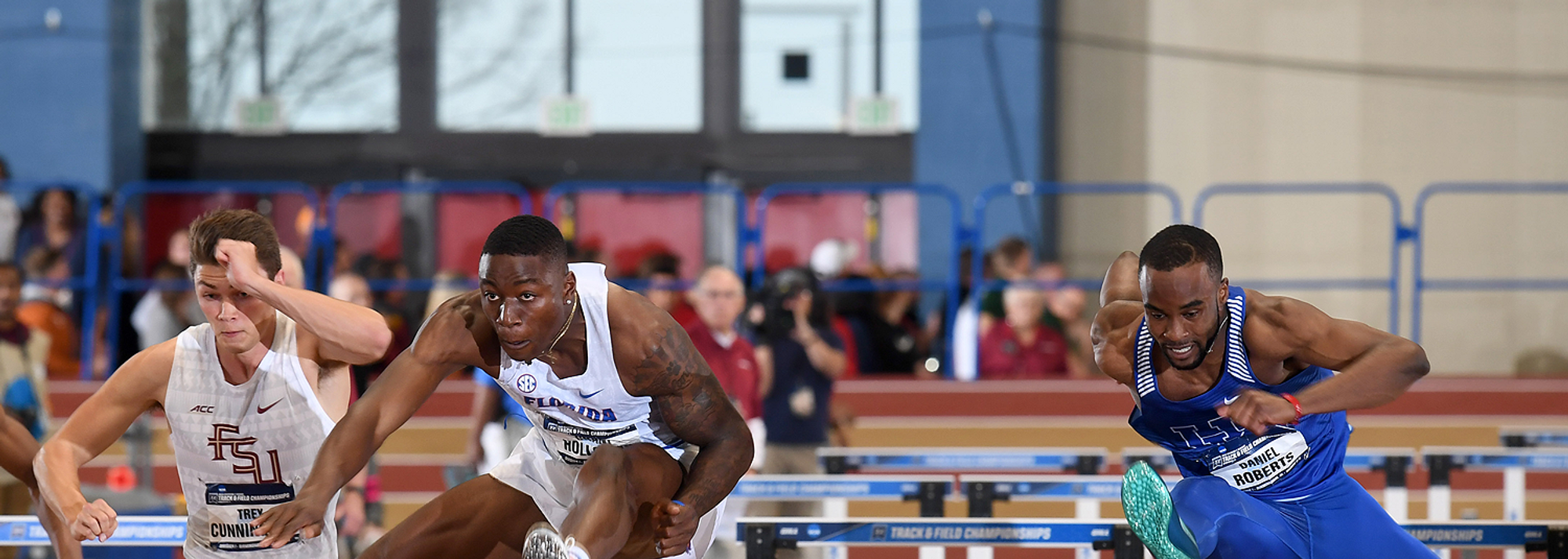 Grant Holloway in the 60m hurdles at the NCAA Indoor Championships (© Kirby Lee)