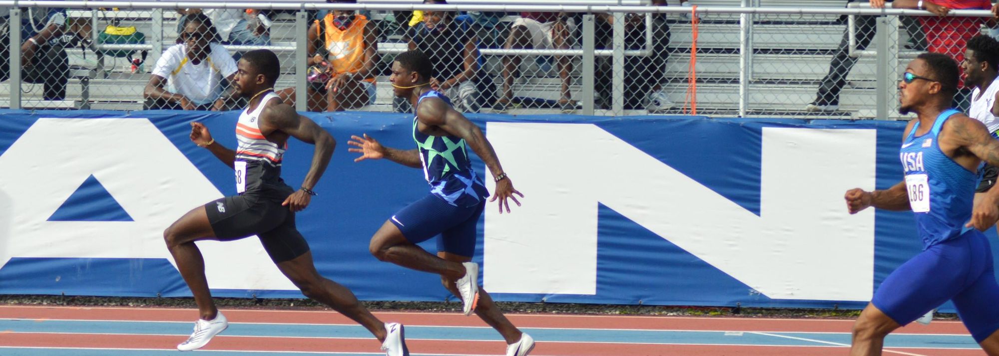 Trayvon Bromell on his way to a 100m win at the NACAC New Life Invitational (© Jeff Porter)