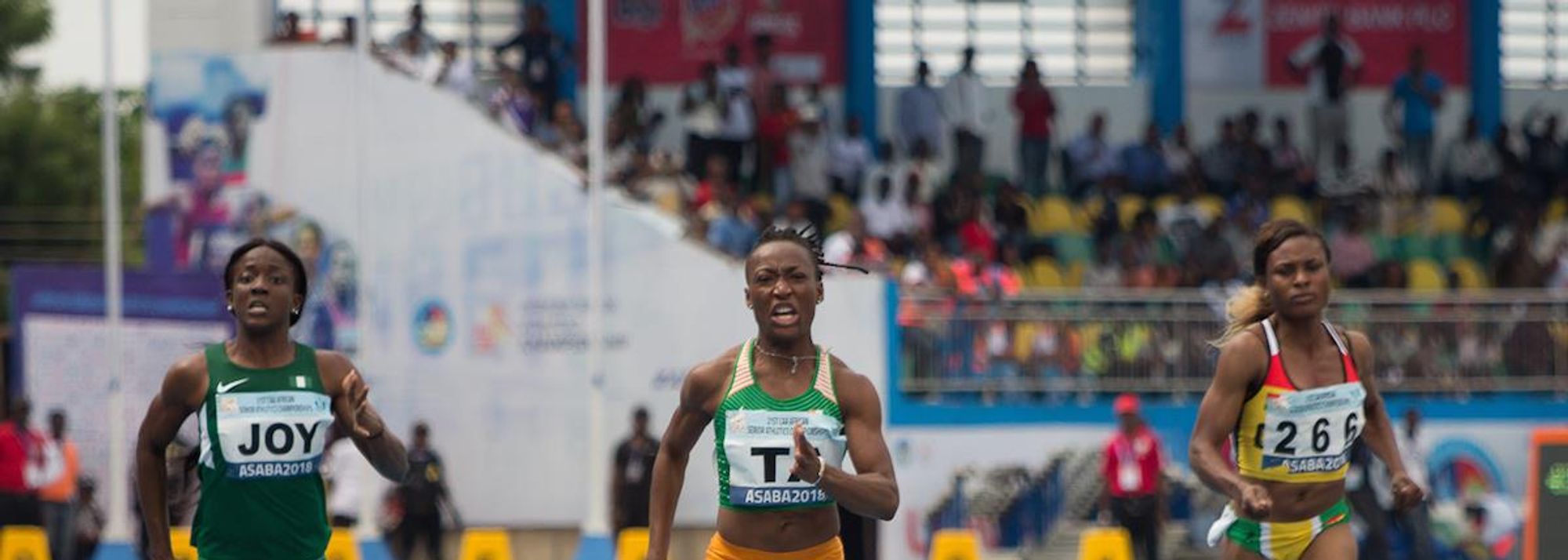 Well back in her wake, Janet Amponsah of Ghana took silver in 11.54, with Joy Udo-Gabriel taking bronze for Nigeria in 11.58.