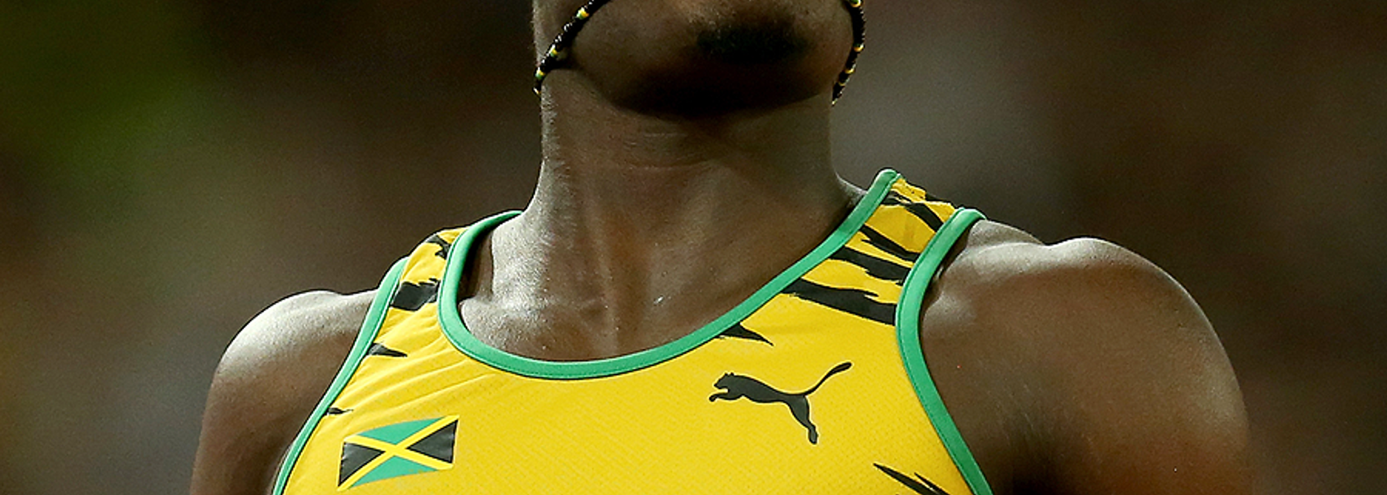 Omar McLeod of Jamaica after crossing the finish line (© Getty Images)
