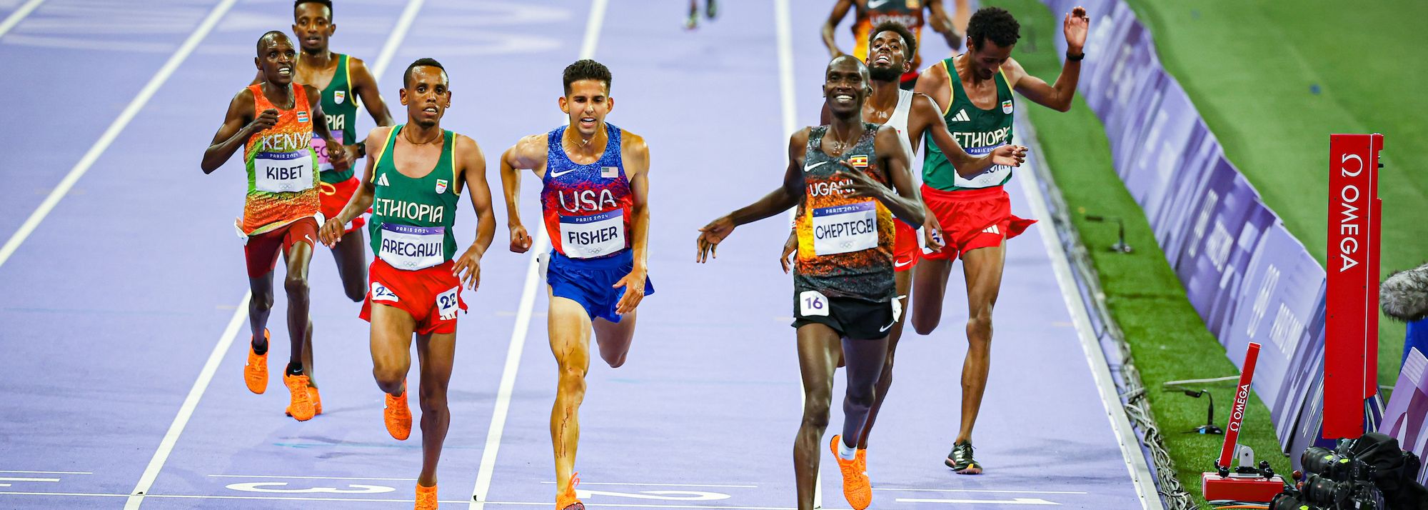 Barega – moving with intent as though it was part of a premeditated plan – returned to the lead at 3000m, reached in 8:02.00, putting them on course to finish inside 26:50. Fisher was in fourth, just ahead of Kiplimo and Gressier.
