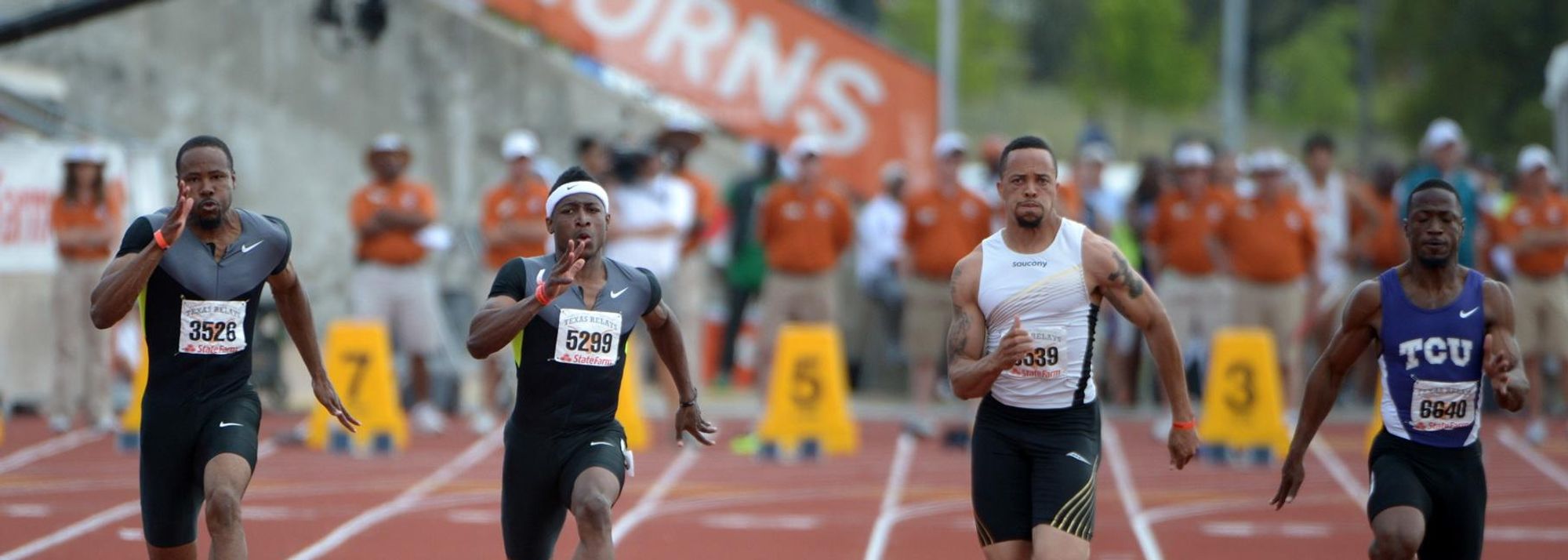 Darvis Patton (left) and Mike Rodgers (centre) at the 2013 Texas Relays (© Kirby Lee)