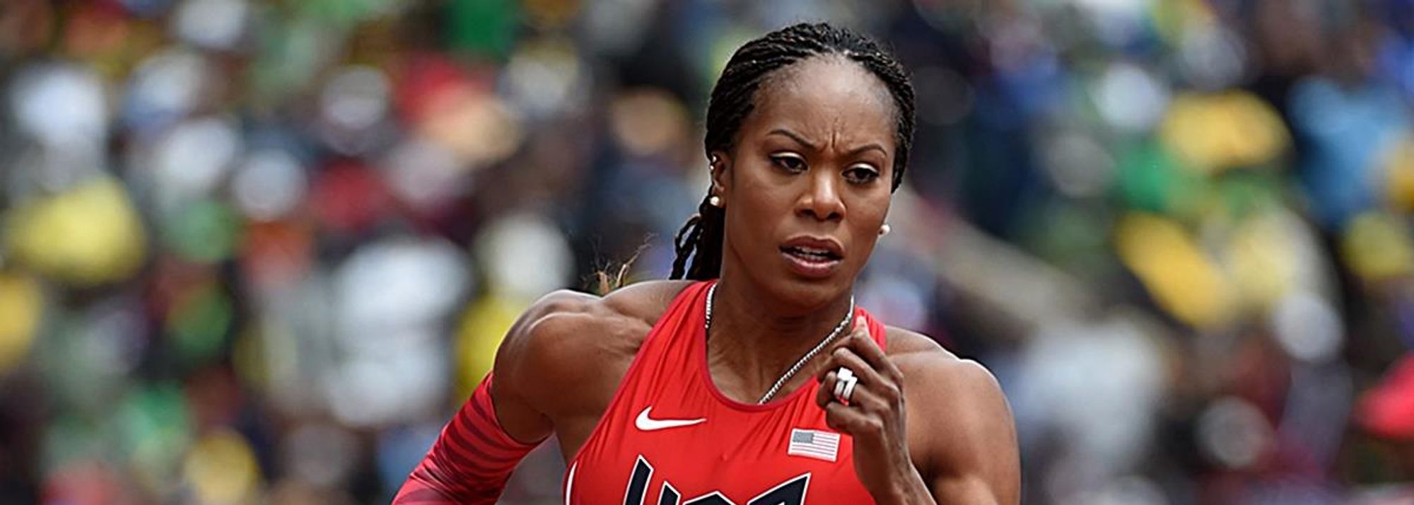 Sanya Richards-Ross in action on the final leg of the 4x400m at the 2016 Penn Relays (© Kirby Lee)