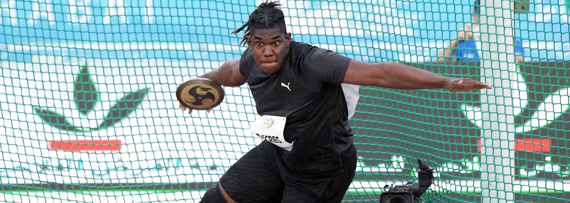 Discus winner Fedrick Dacres at the IAAF Diamond League meeting in Rabat (© Kirby Lee)