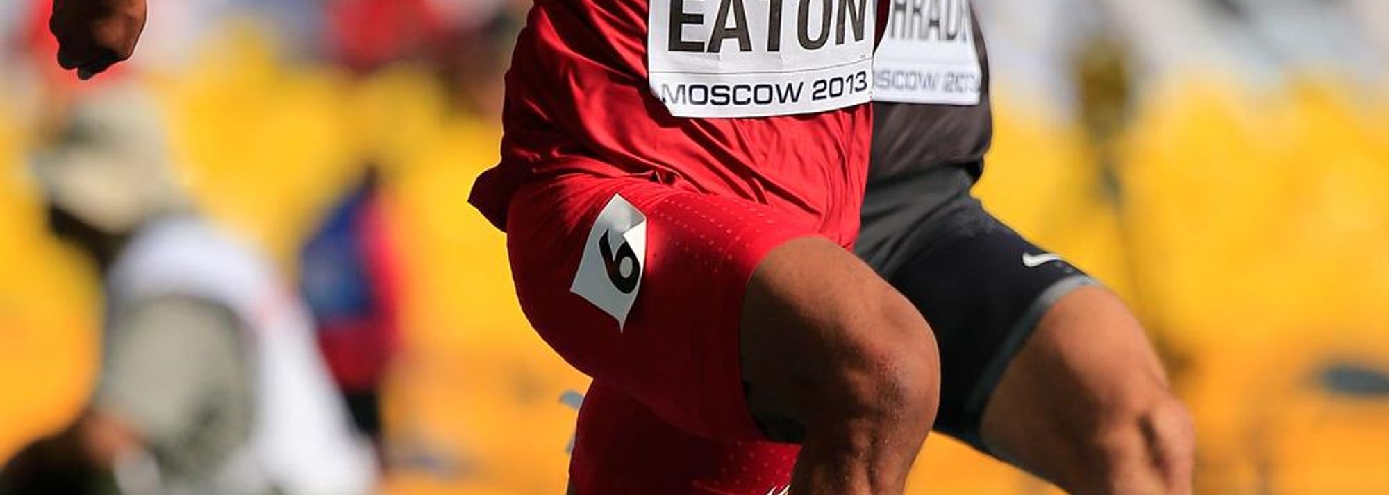 Ashton Eaton in the Decathlon 100m at the 2013 IAAF World Championships in Moscow (© Getty Images)
