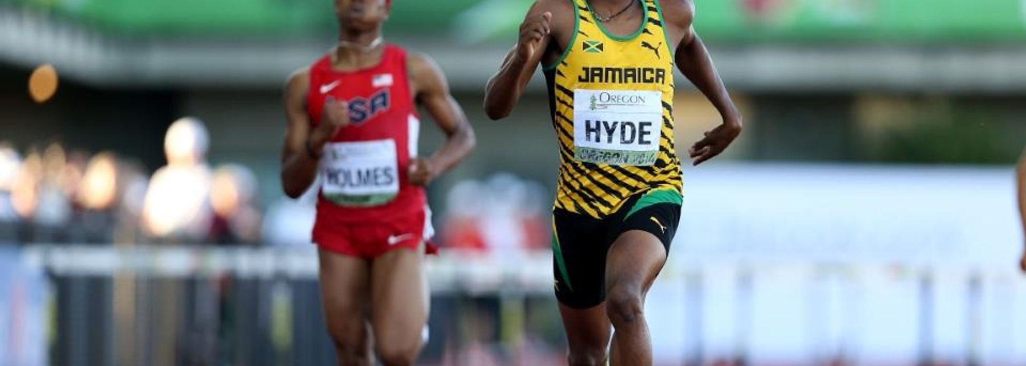 Jaheel Hyde on his way to 400m hurdles gold at the IAAF World Junior Championships Oregon 2014 (© Getty Images)