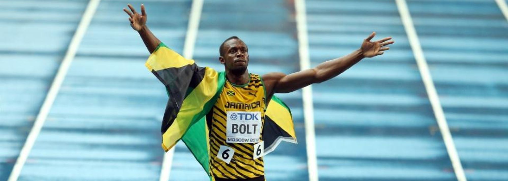 Usain Bolt after winning the 100m at the IAAF World Championships Moscow 2013 (© Getty Images)