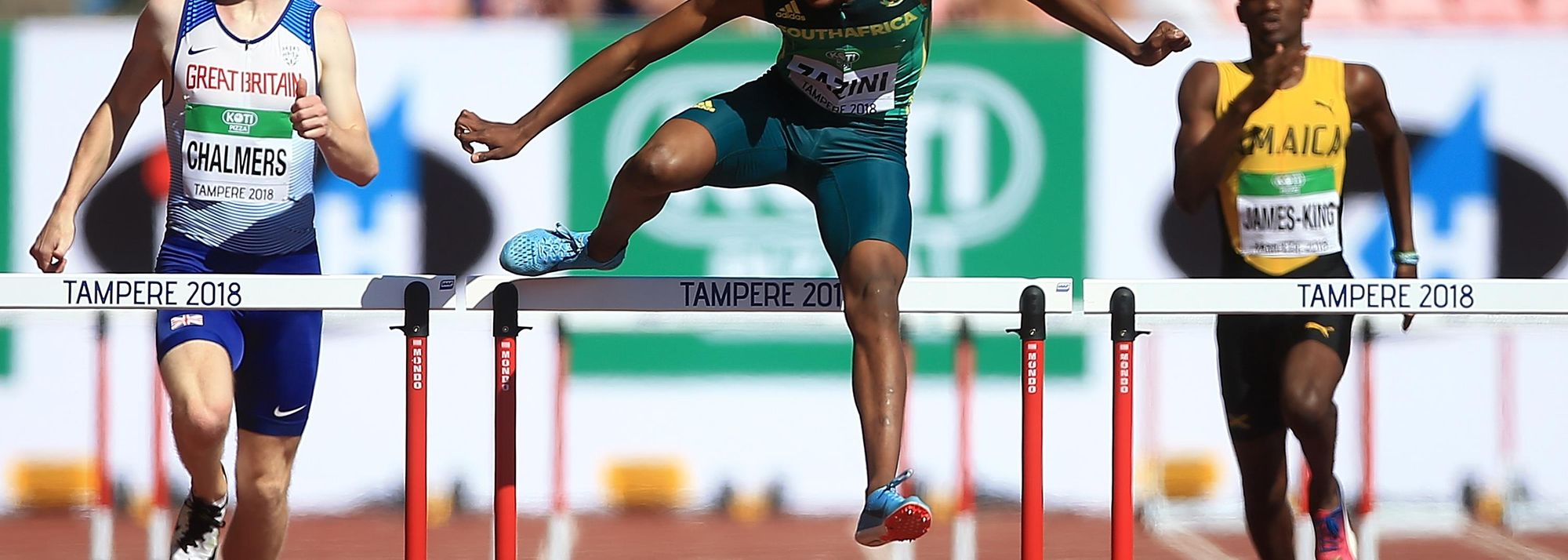 Pushed to the line and tested to the limit in a fiercely competitive race, Sokwakhana Zazini lived up to the massive expectations heaped upon his slight shoulders to strike gold in the 400m hurdles and take South Africa's second-ever men's gold in the event, and to join Zenéy van der Walt for the country's sweep of the discipline at these championships.