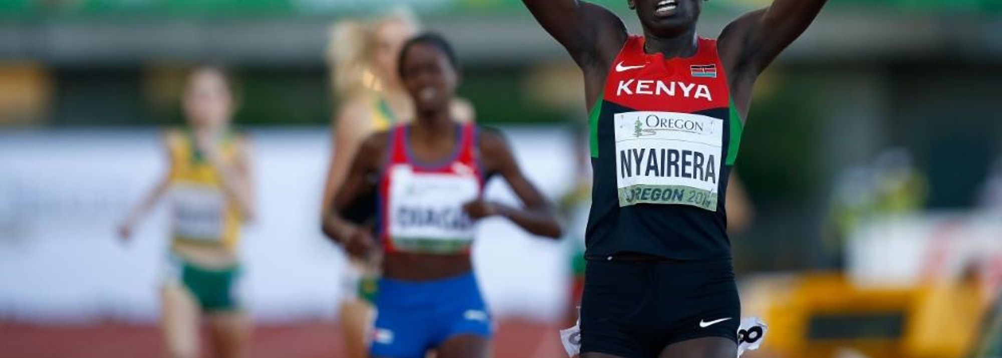 Margaret Nyairera Wambui wins the 800m at the IAAF World Junior Championships, Oregon 2014 (© Getty Images)