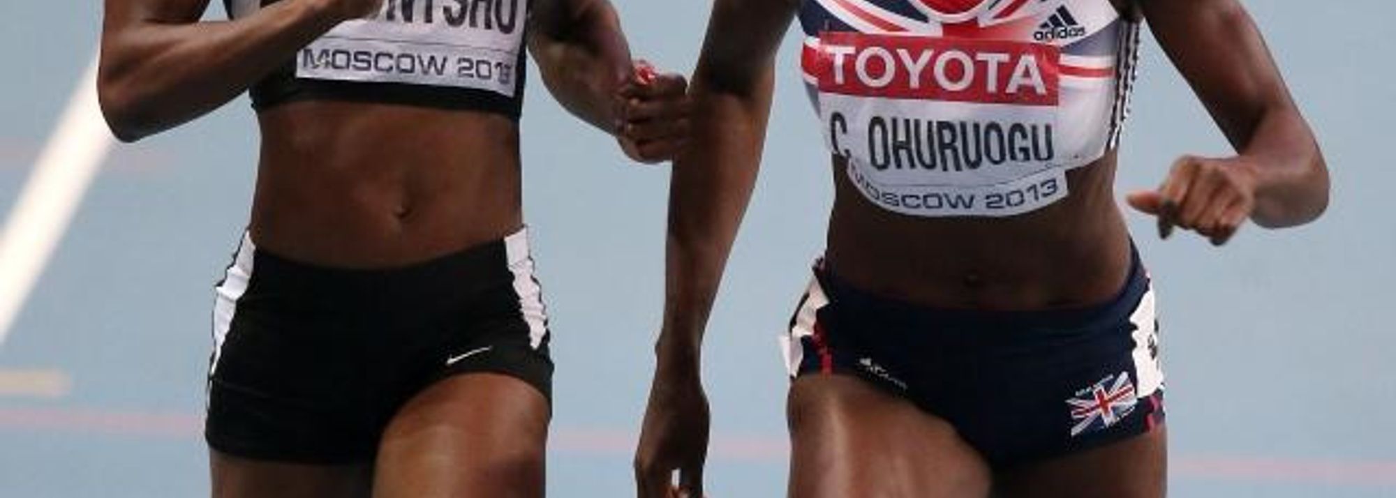 Christine Ohuruogu and Amantle Montsho in the women's 400m final at the IAAF World Championships Moscow 2013 (© Getty Images)