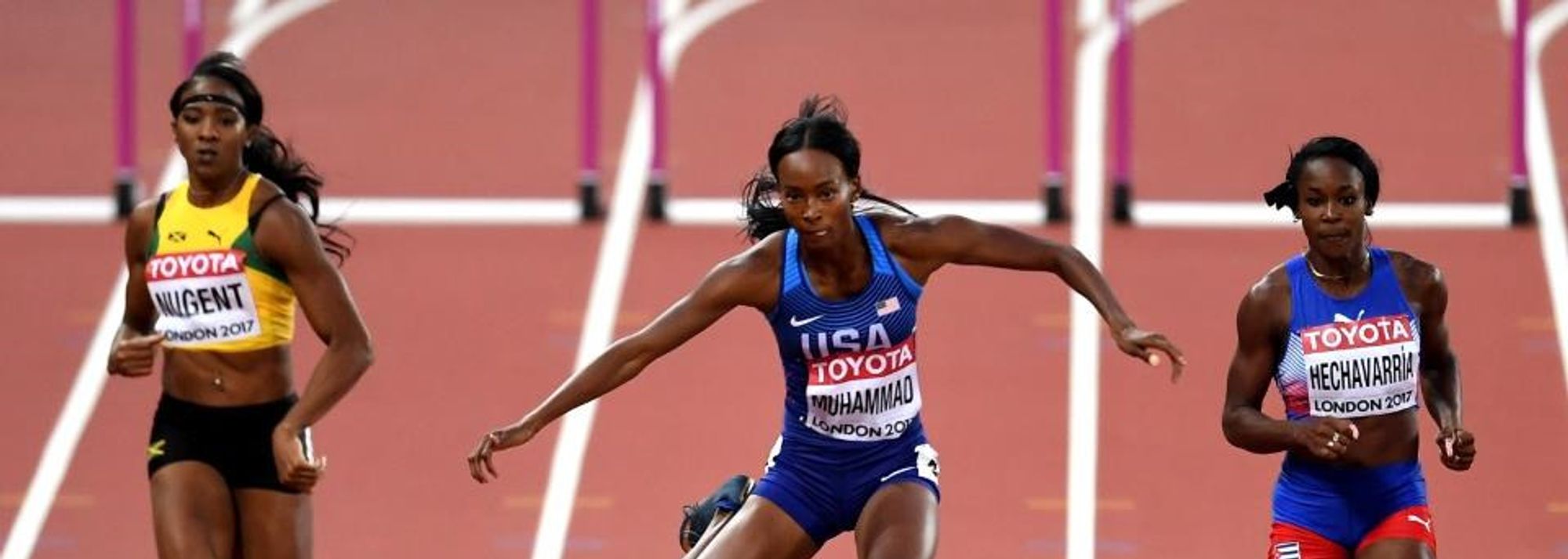 Dalilah Muhammad in the 400m hurdles heats at the IAAF World Championships London 2017 (© Getty Images)