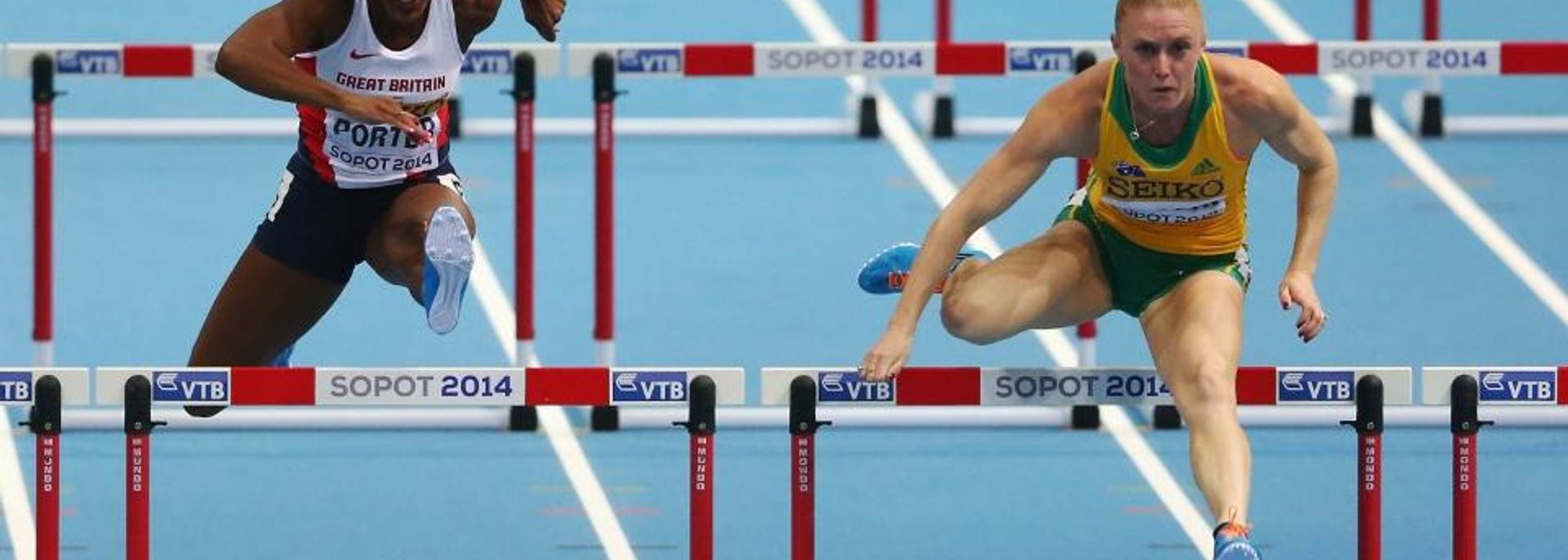 Sally Pearson in the 60m hurdles at the 2014 IAAF World Indoor Championships in Sopot (© Getty Images)
