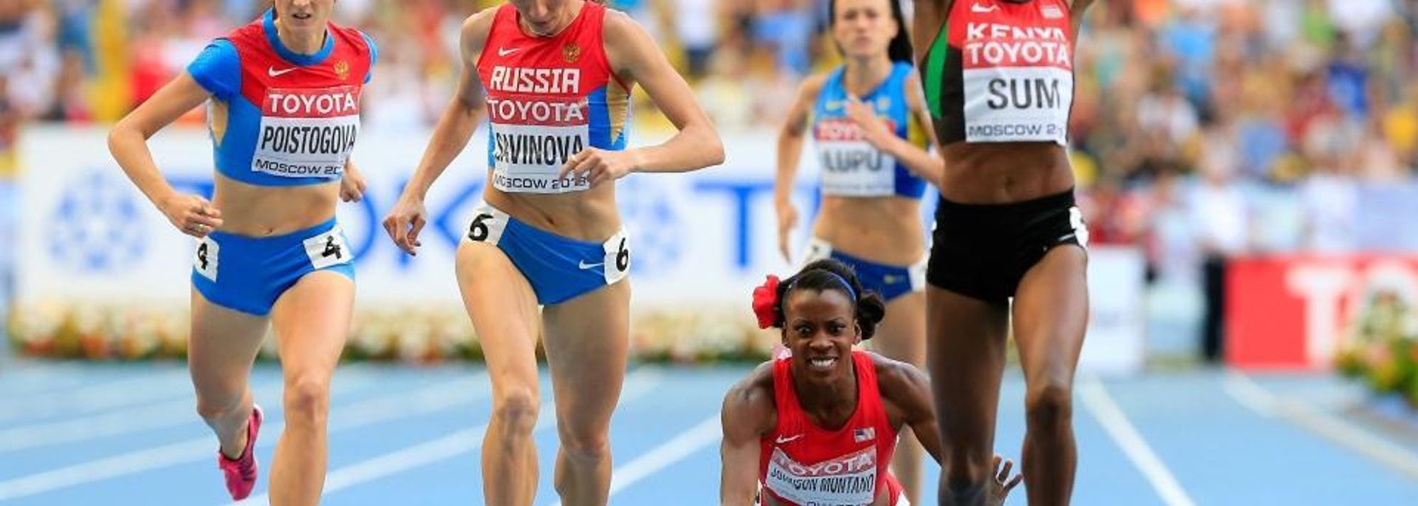 Eunice Jepkoech Sum and Alysia Montano in the womens 800m at the IAAF World Athletics Championships Moscow 2013 (© Getty Images)
