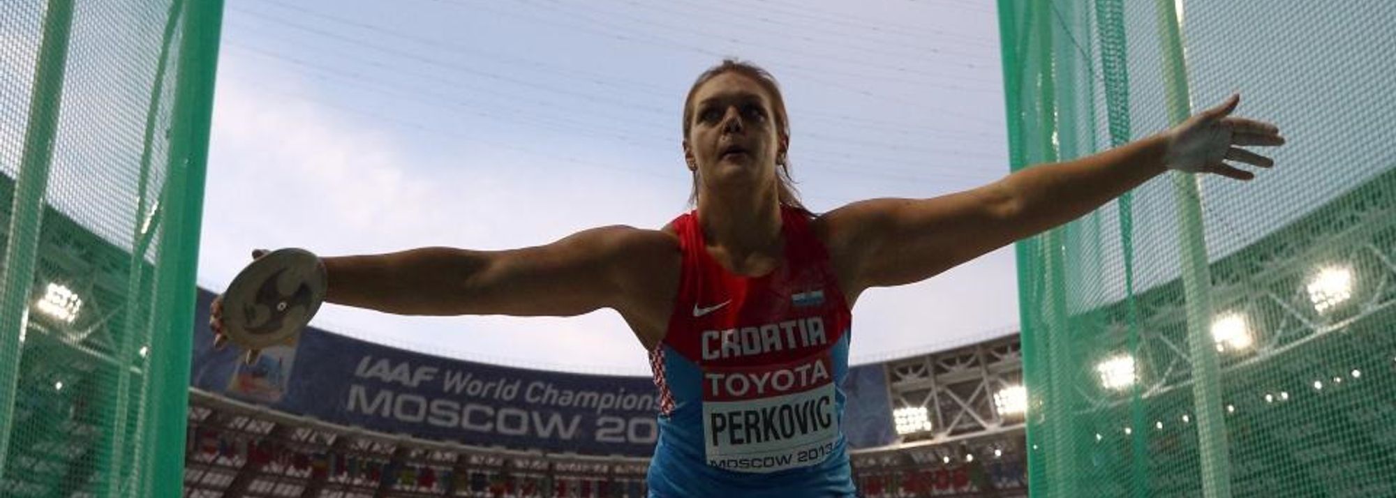 Sandra Perkovic made history inside the Luzhniki Stadium by becoming the first woman to complete the ‘Grand Slam’ of Olympic, European and World Discus titles with a typically dominant performance.