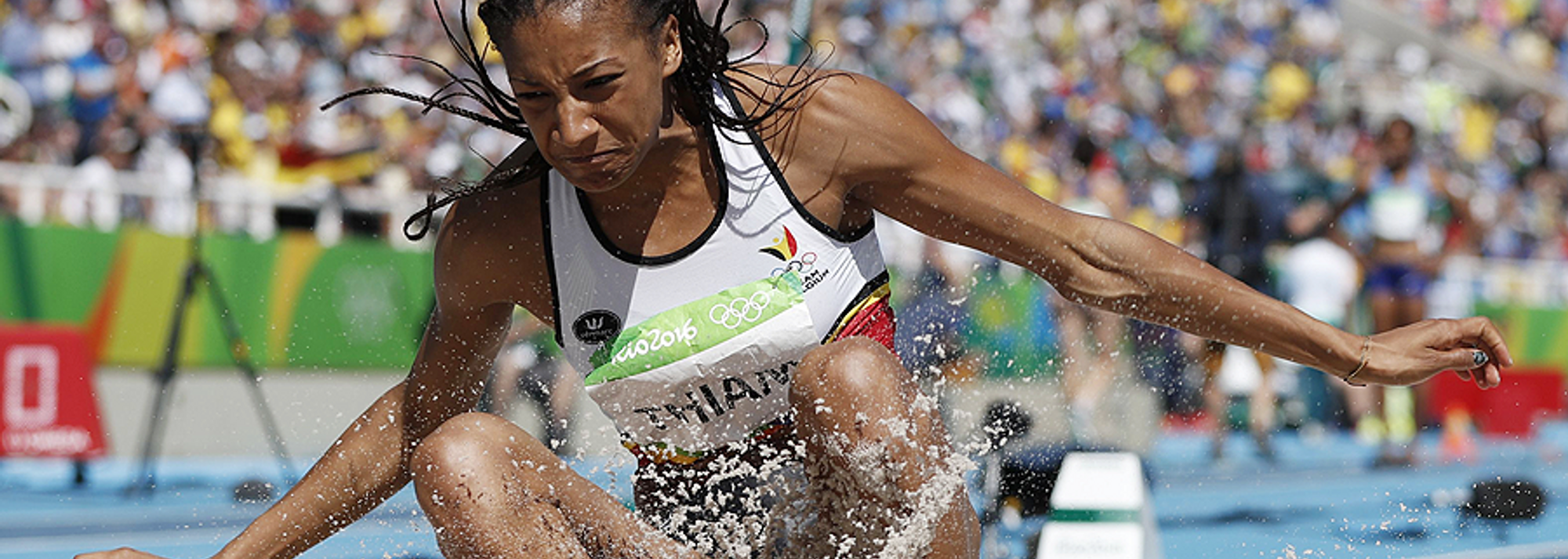 Nafissatou Thiam in the heptathlon long jumpat the Rio 2016 Olympic Games (© AFP / Getty Images)