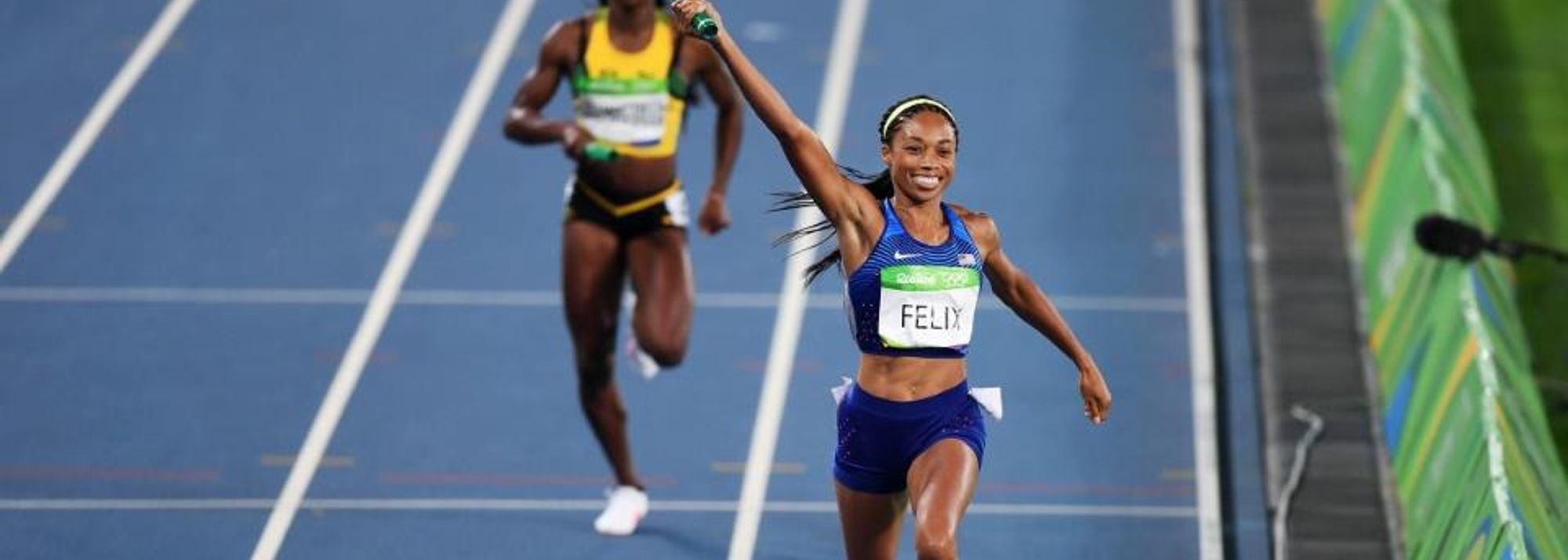 For a brief moment on the back straight, it looked as though Jamaica’s fourth-leg runner Novlene Williams-Mills was closing on Felix, but the Olympic silver medallist dug in with 150 metres remaining and maintained the USA’s lead, crossing the line in a world-leading 3:19.06.