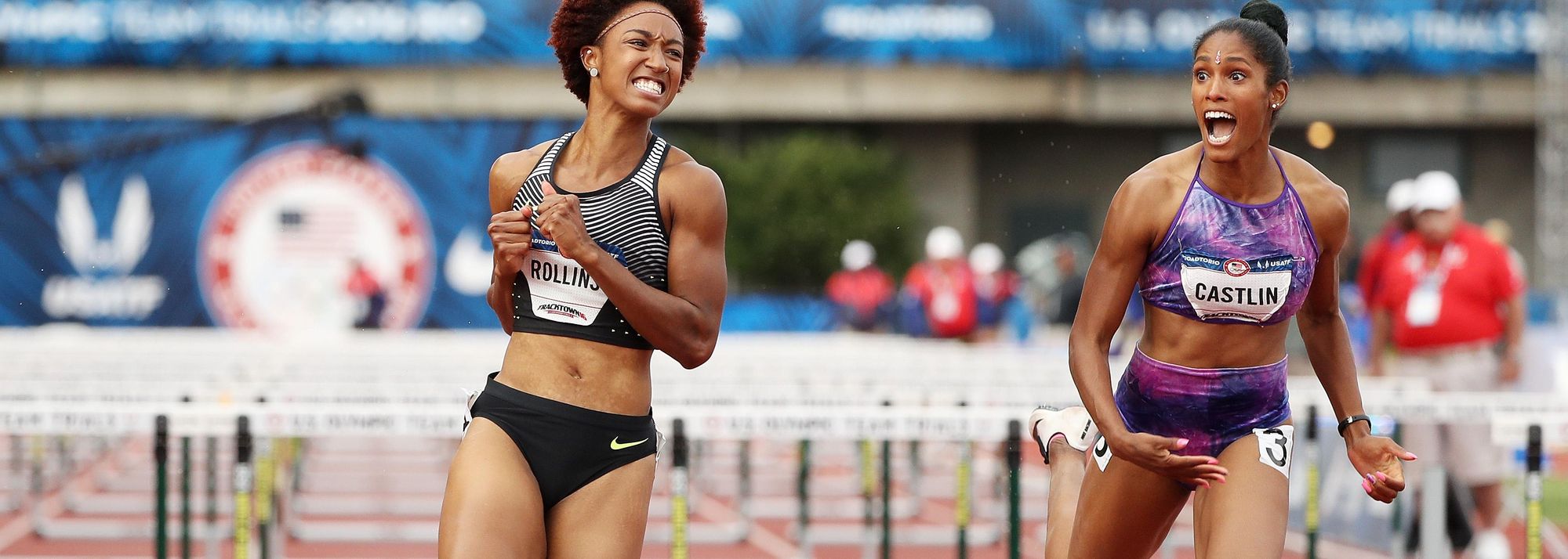Brianna Rollins and Kristi Castlin celebrate after their 1-2 finish at the US Olympic Trials (© Getty Images)
