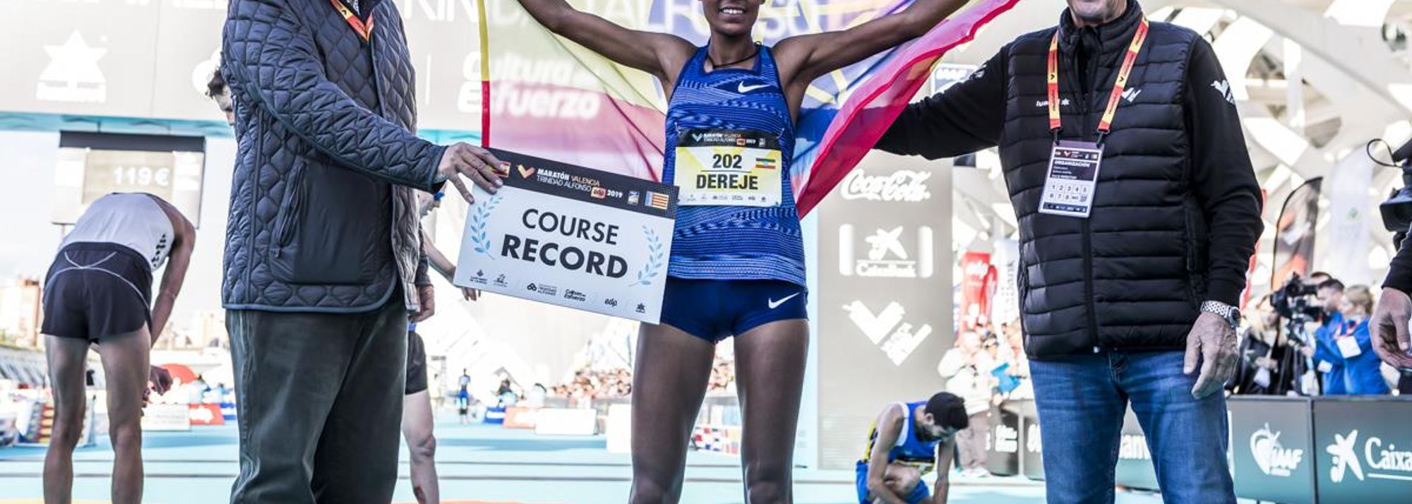Ethiopians Roza Dereje and Kinde Atanaw Alayew produced impressive victories at the Maraton Valencia Trinidad Alfonso, a World Athletics Gold Label road race, in the eastern Spanish city on Sunday (1).