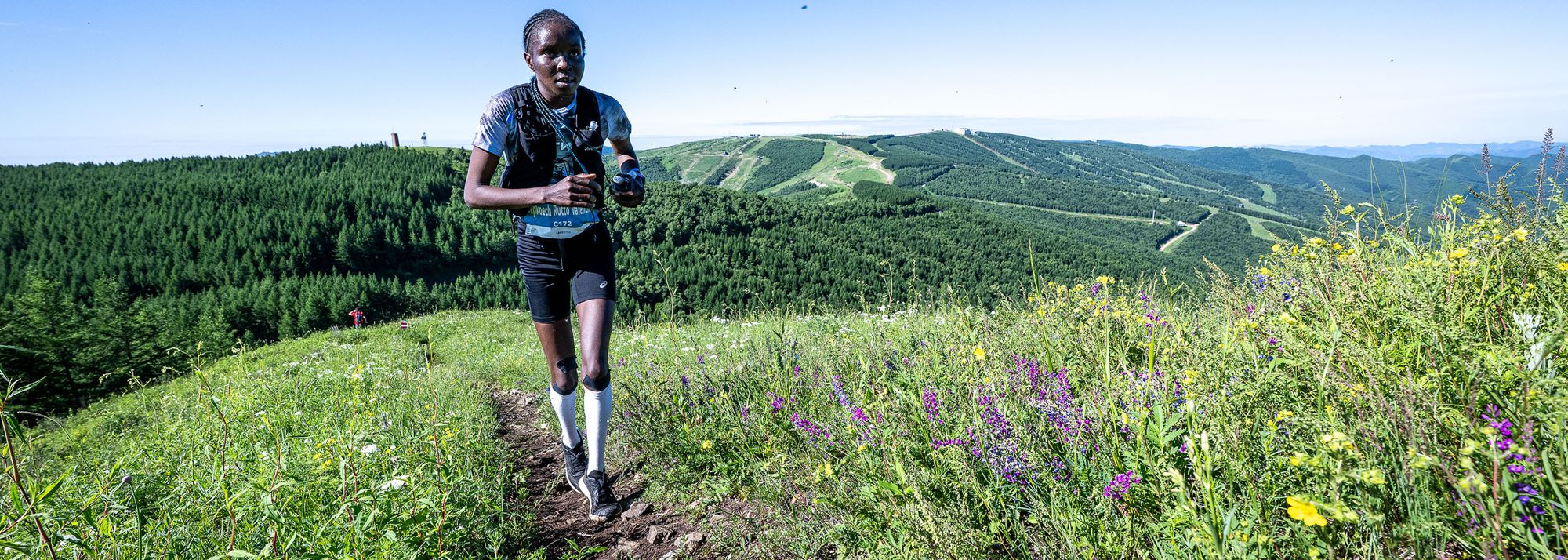 Under brilliant sunshine and already warm temperatures at the 7am start, the athletes tackled an immediate descent before facing a steep climb of 450m. A fast descent to the 7km checkpoint was followed by a sustained ascent back to 2100m for the race’s midpoint. Runners then remained on high ground before a heart-pounding 2km drop into the valley finish.
