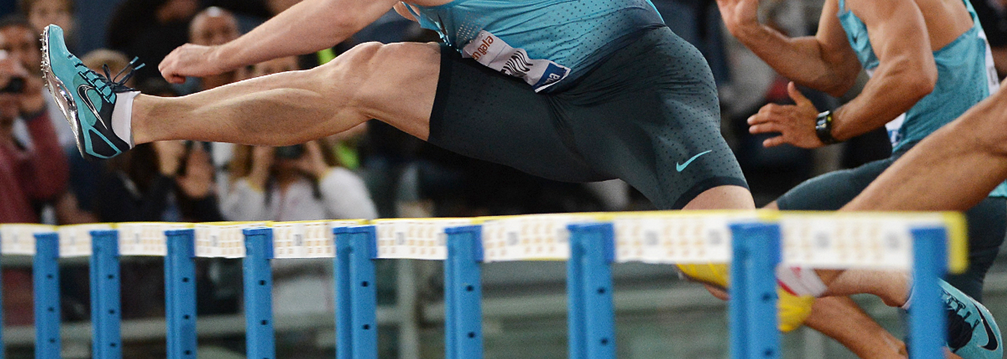 Sergey Shubenkov on his way to winning the 110m hurdles (© AFP / Getty Images)