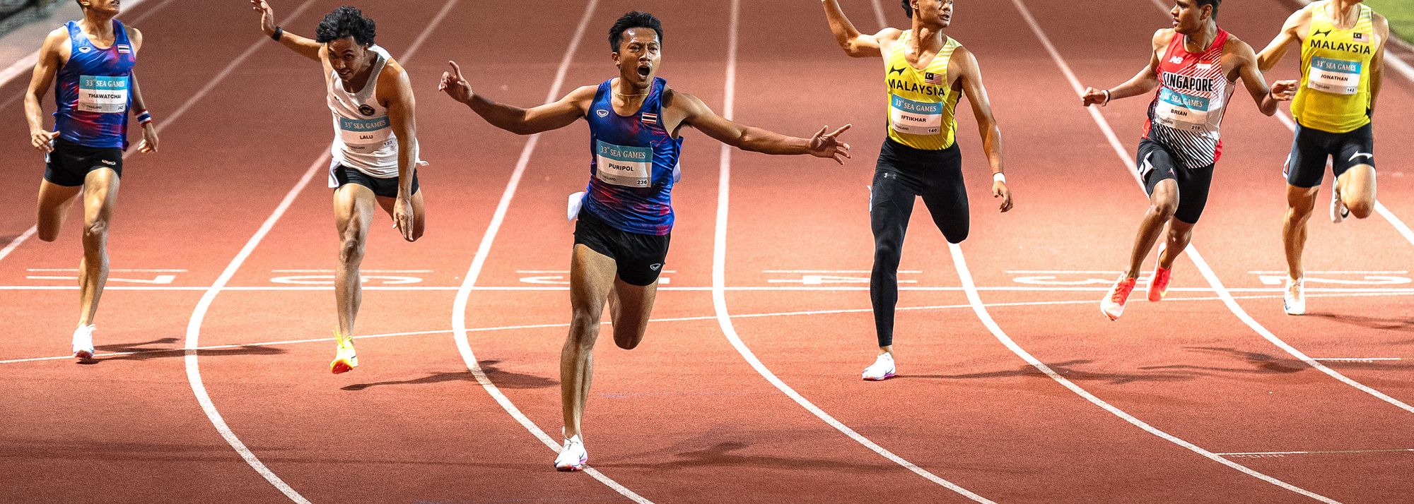 Thailand’s Kieran Tuntivate also achieved three golds, winning the 1500m in 3:47.50, the 5000m in 14:46.38 and the 10,000m in 29:41.81. He completed a 1500m-5000m double in 2023 and a 5000m-10,000m double in 2019, but went one better in Bangkok, achieving his third victory – in the 10,000m – on the final day of athletics competition.