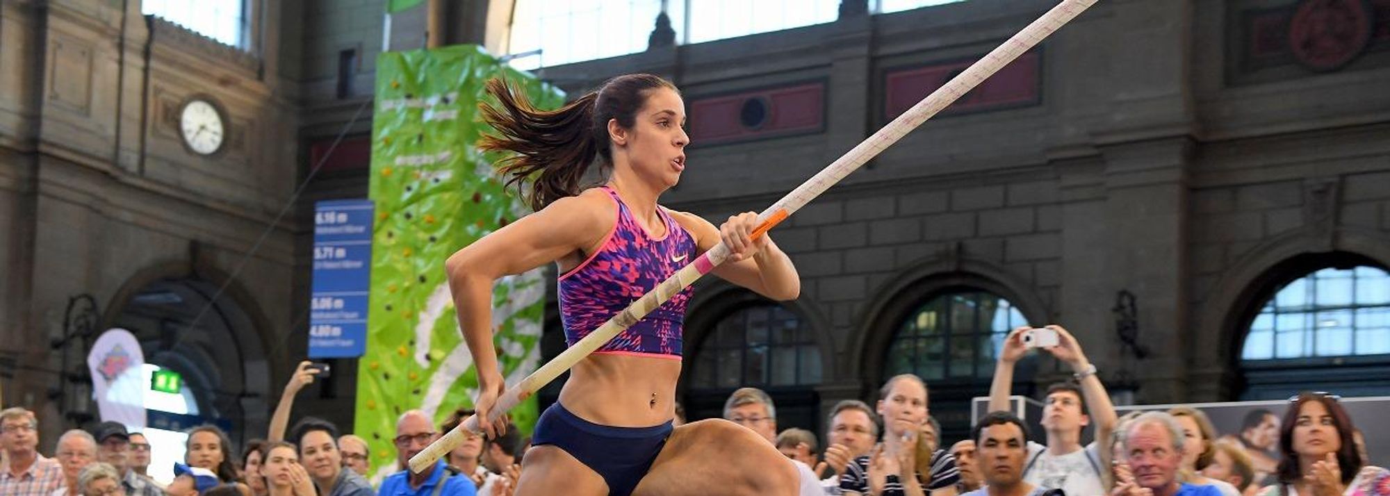 The women's pole vault isn't a Diamond discipline at Zurich's Weltklasse meeting, but that didn't keep the athletes from relishing the spectacular atmosphere in the large hall of the city's central station, the busiest transport hub in Switzerland. The spectators, whose numbers grew as the competition progressed, soaked in the entertainment as well.