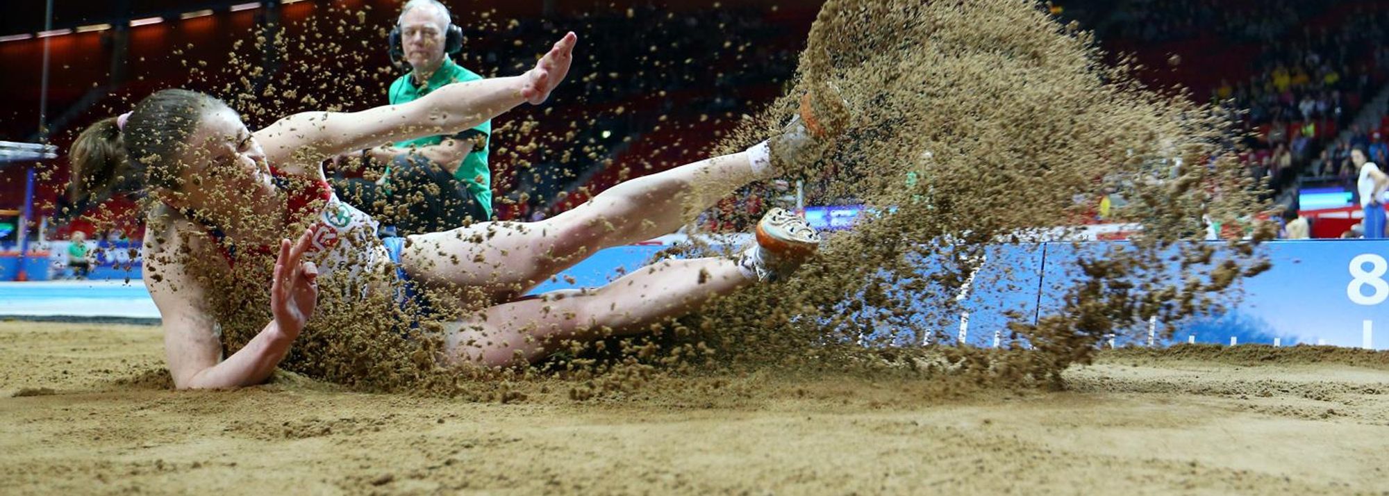 All three of her jumps – 6.77m, 6.79m, 6.98m – were better than 2011 world silver medallist Olga Kucherenko’s 6.69 m. World triple jump silver medallist Ekaterina Koneva was third with an indoor PB of 6.56m.