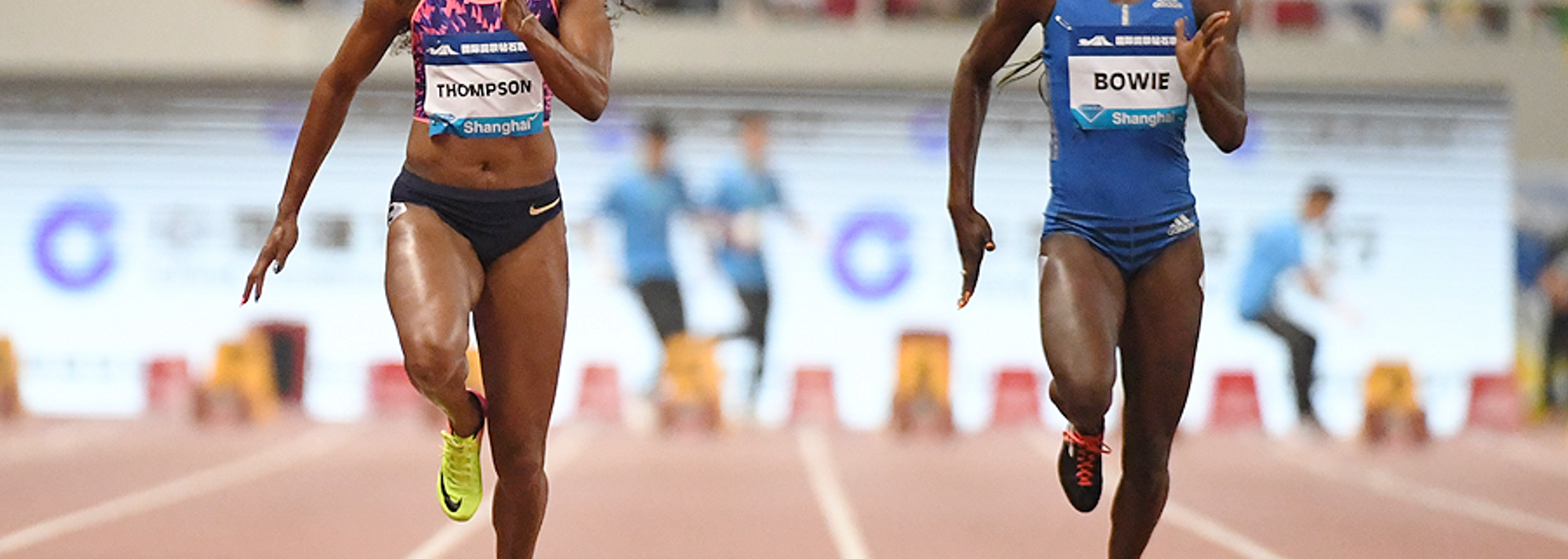 Elaine Thompson powers to 100m victory at the IAAF Diamond League meeting in Shanghai (© Errol Anderson/Jiro Mochizuki)