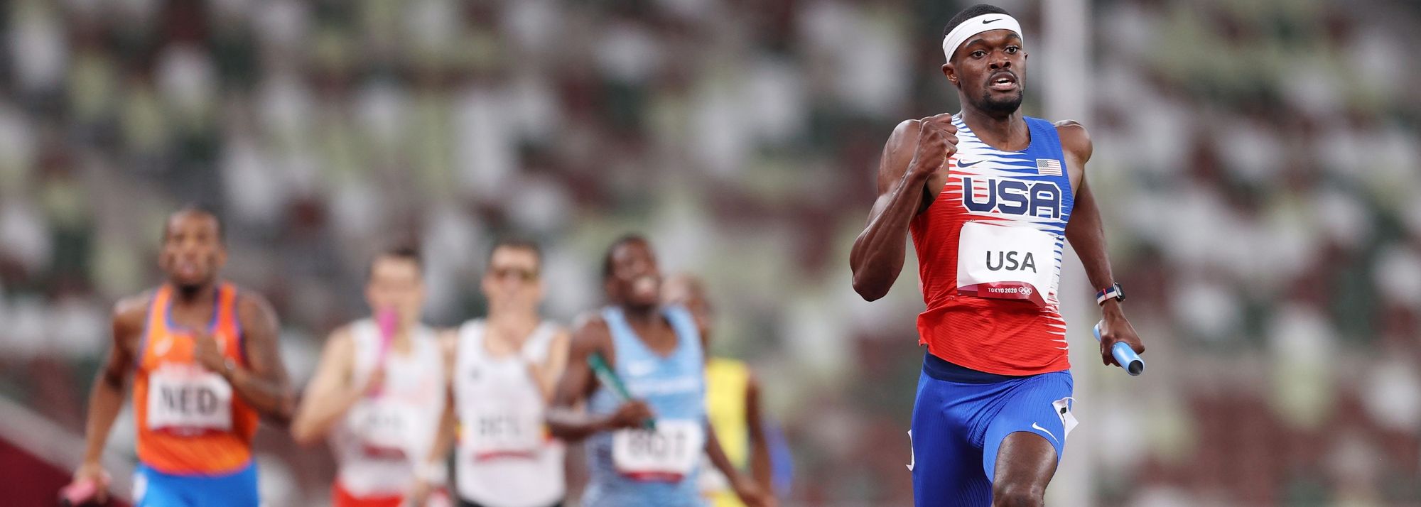 Rai Benjamin anchors the US 4x400m team to gold at the Tokyo 2020 Olympic Games (© Getty Images)