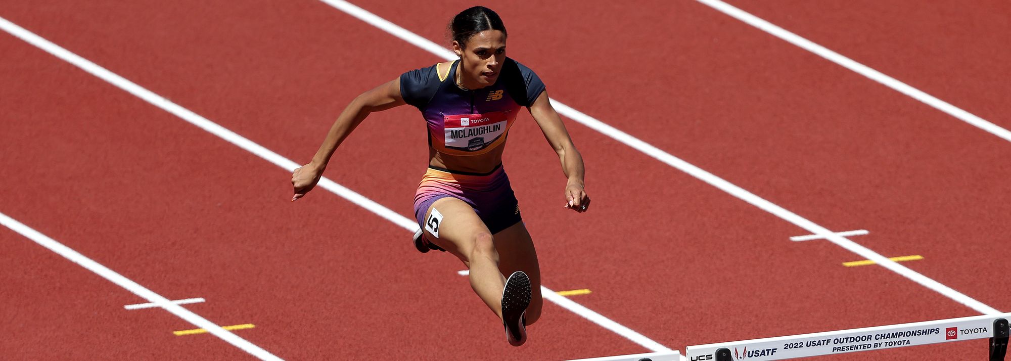 Sydney McLaughlin on her way to breaking the 400m hurdles world record at the US Championships (© Getty Images)