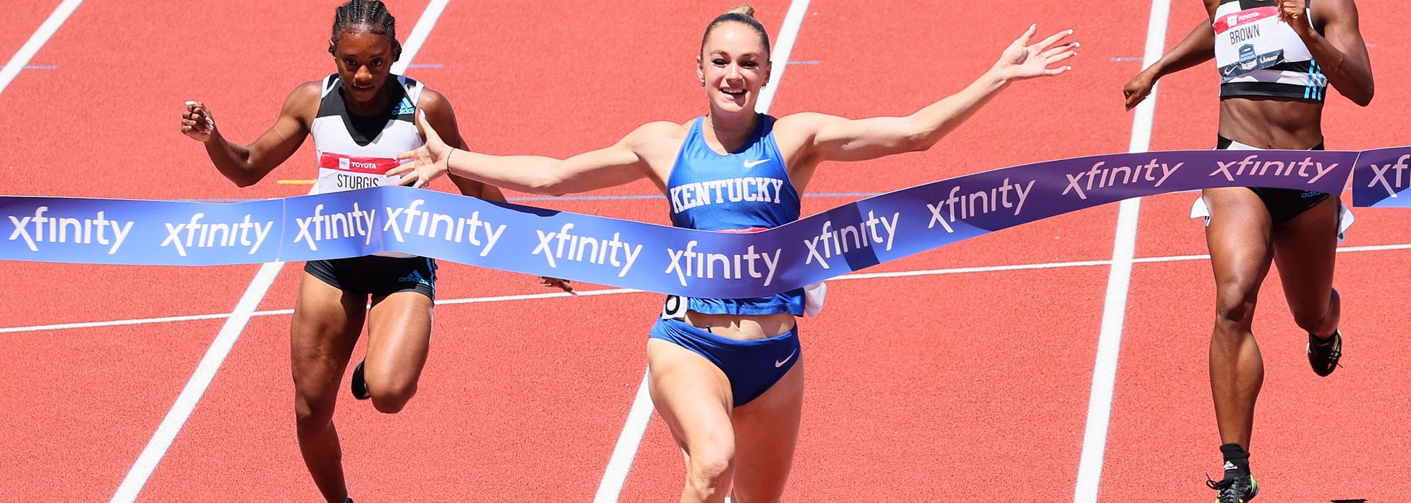 For Steiner, Hayward Field is definitely in her comfort zone. She lowered her PB to 21.77 while earning her first national crown just 15 days after shattering the collegiate record and taking the world lead with a 21.80 amid cooler temperatures at the NCAA Championships. The University of Kentucky sprinter equalled that time in the semifinals at the US Championships.