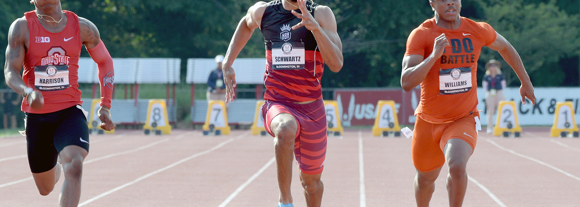 World U20 leader Anthony Schwartz won the 100m in 10.23 on Friday (15) to highlight the opening day of the USA Junior Championships in Bloomington, Indiana.