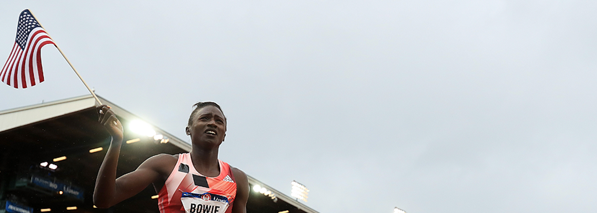 Tori Bowie after winning the 200m at the US Olympic Trials (© Getty Images)