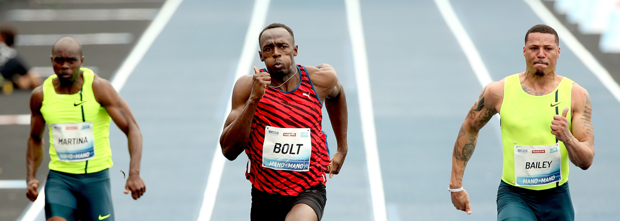 Running into a -1.3m/s headwind and recovering from his blocks slipping at the start, Bolt trailed USA’s Ryan Bailey in the early stages of the race. But the multiple Olympic gold medallist caught Bailey before half way before opening up daylight before the finish, winning in 10.12.