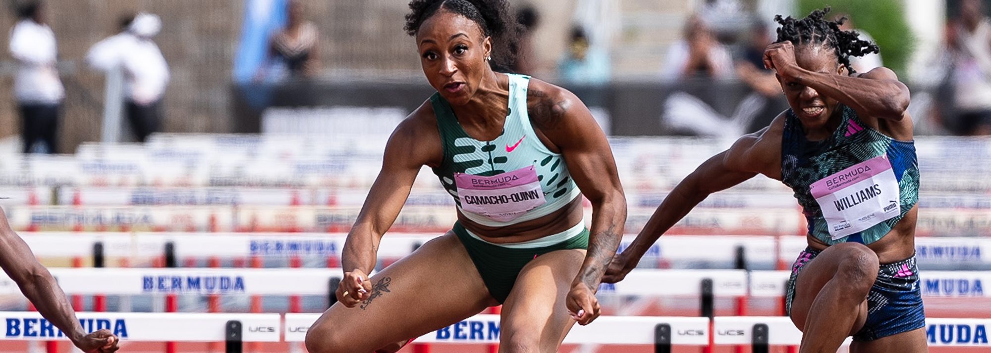 Jasmine Camacho-Quinn clocked one of the fastest ever 100m hurdles times in all conditions, Tara Davis-Woodhall won an exciting long jump clash and Steven Gardiner continued his comeback with a win at a blustery USATF Bermuda Grand Prix in Devonshire on Sunday (21).