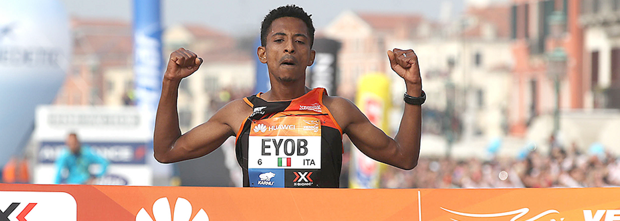 Eyob Gebrehiwet improved his PB by three minutes to win the 32nd edition of the Huawei Venice Marathon in 2:12:16 on Sunday (22), becoming the first Italian man since 1995 to win the IAAF Bronze Label road race.