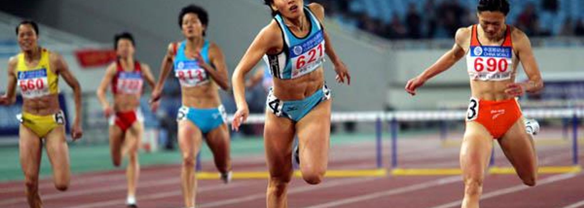 Huang Xiaoxiao (c), winning the 400m hurdles at the 10th Chinese National Games (© Jiro Mochizuki-Agence SHOT)